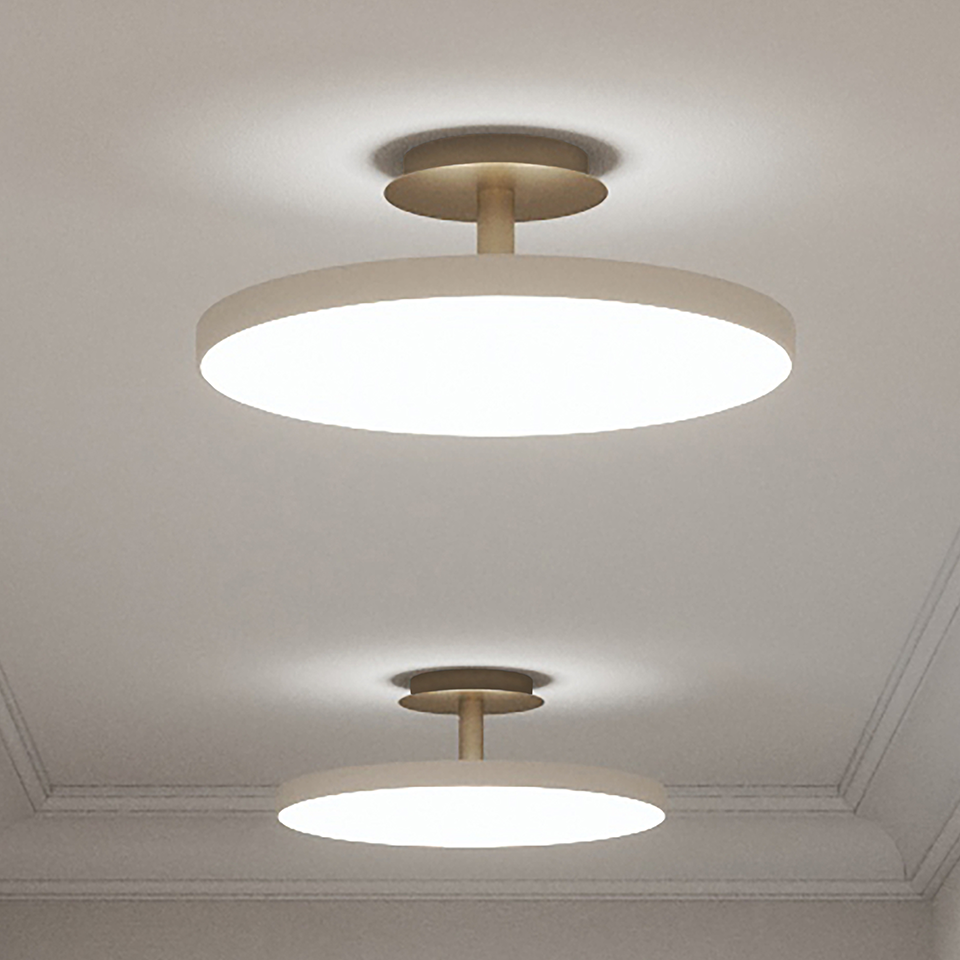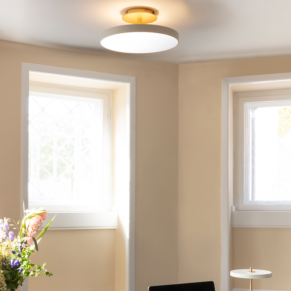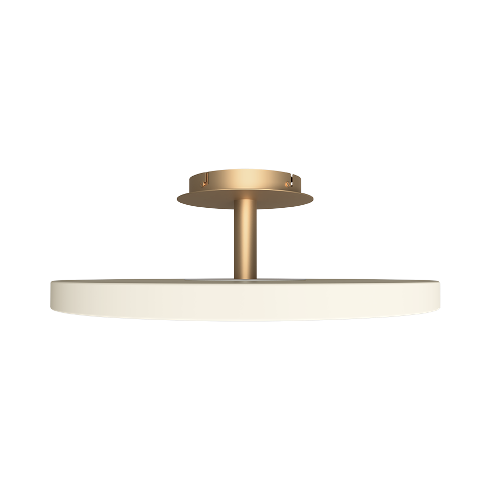 Finding the right light for the kitchen and hallway can be a challenge. The Asteria Up ceiling lamp is not only offering the perfect light but is also a very discrete and stylish solution. The lampshade is placed on a brass base, adding a refined expression to the lamp design. A top panel provides an ambient light upwards as well, enhancing the details of the design and secures a soft atmosphere in the surrounding space. Available in medium and large in two different colors.