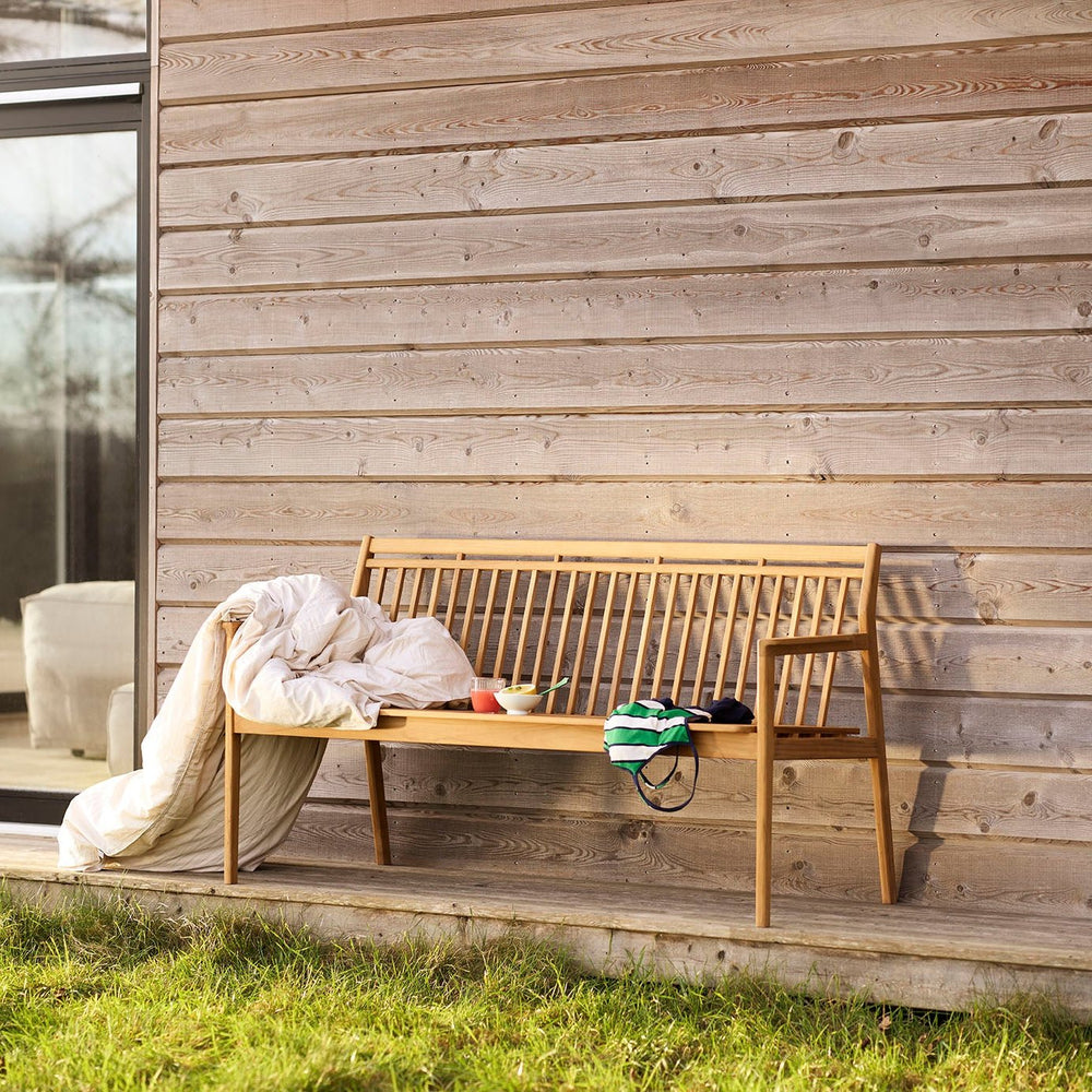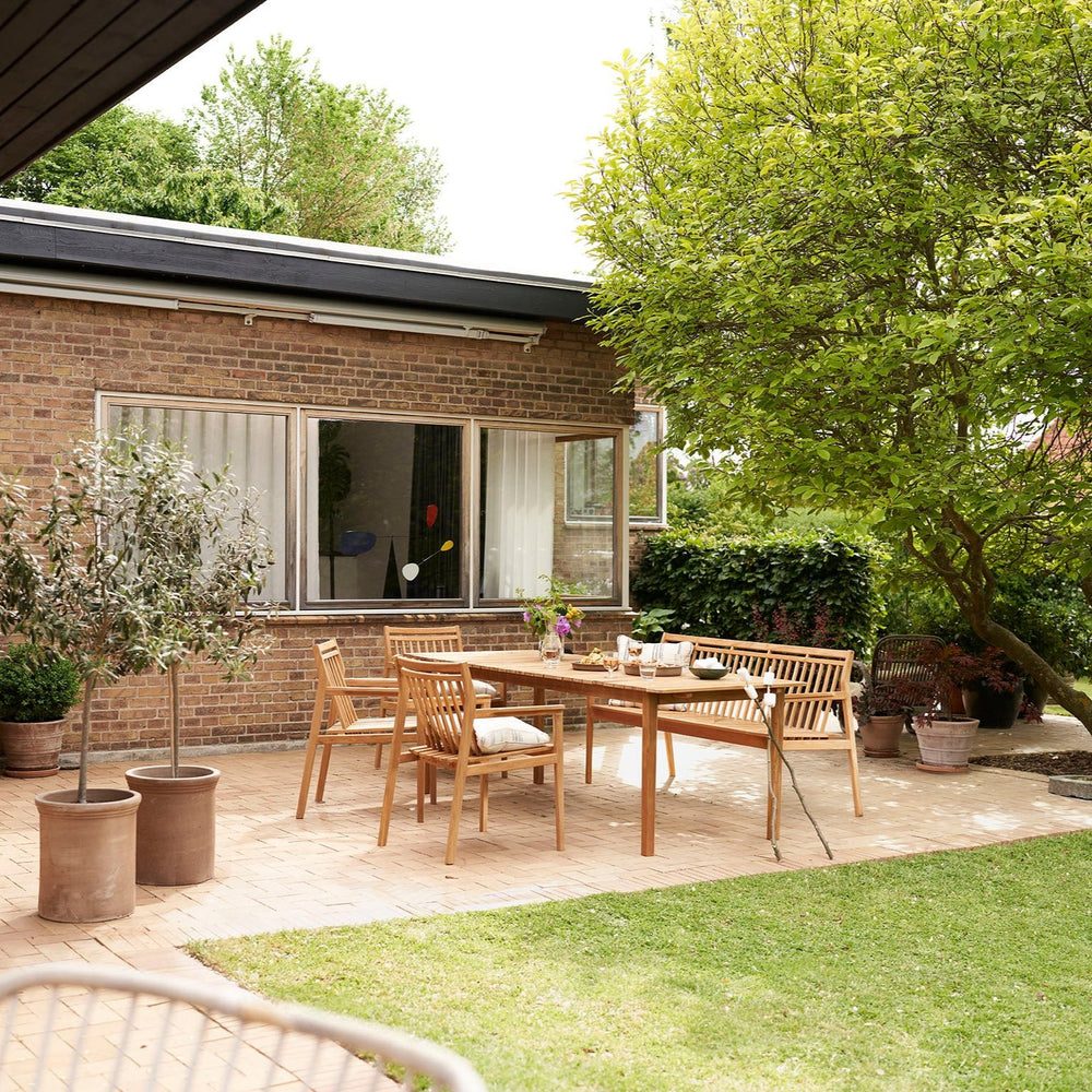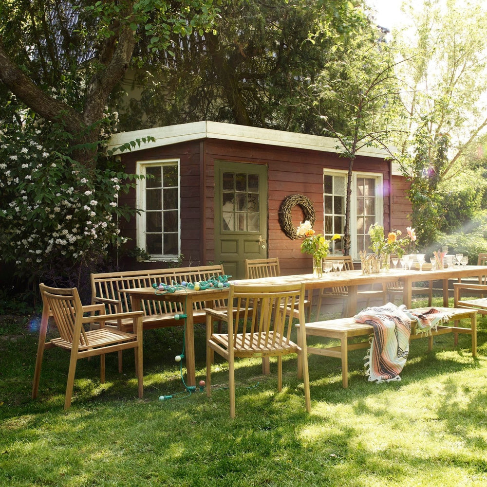 The garden bench is the ideal solution when you need extra seating at the dining table, and is especially suitable for children when eating outside in the summer. The bench can also be taken to a corner of the garden, which can then be enjoyed from a completely new angle. The bench is born of FDB Møbler’s design tradition, and is made of natural oiled teak with numerous details that highlight the quality of both its craftsmanship and design. It matches the large M2 dining table and, of course, the two chairs in the series.