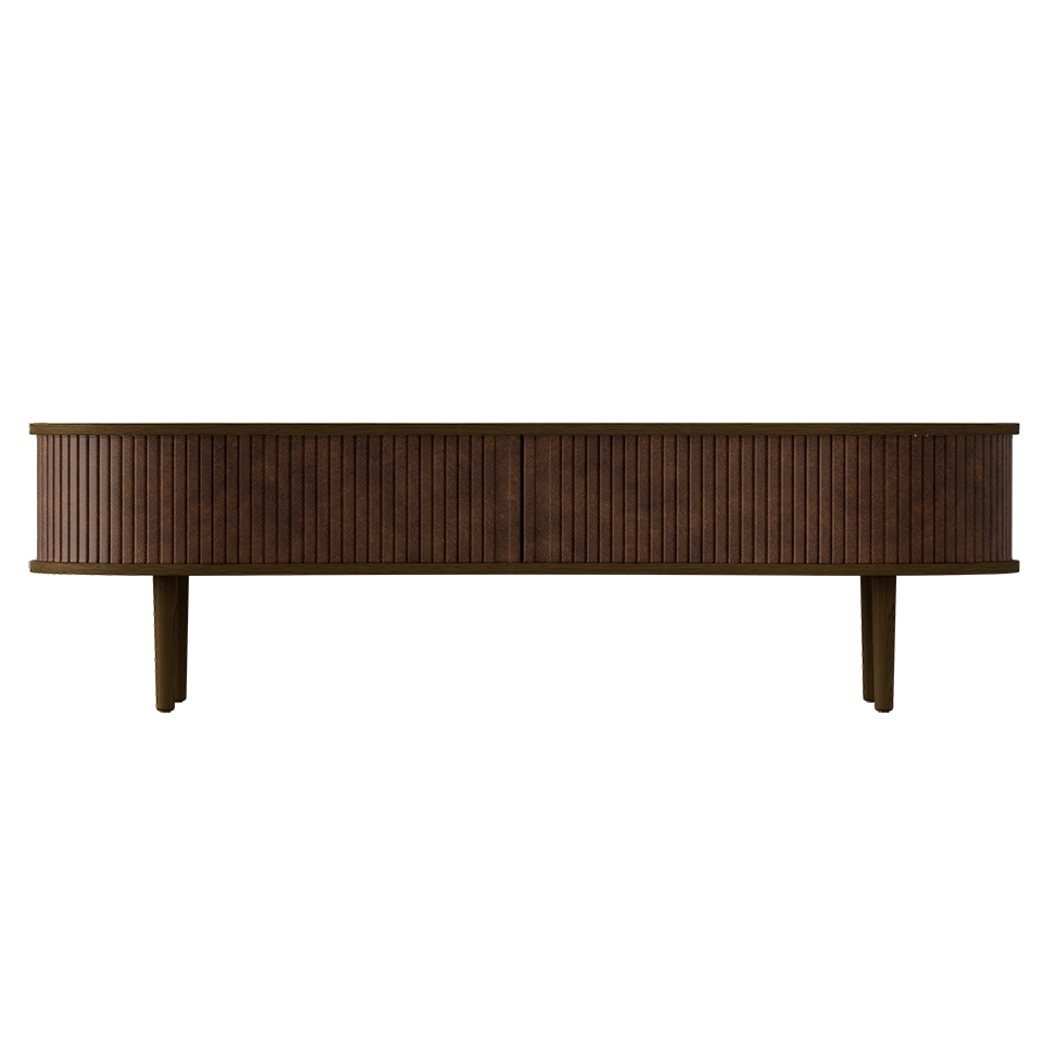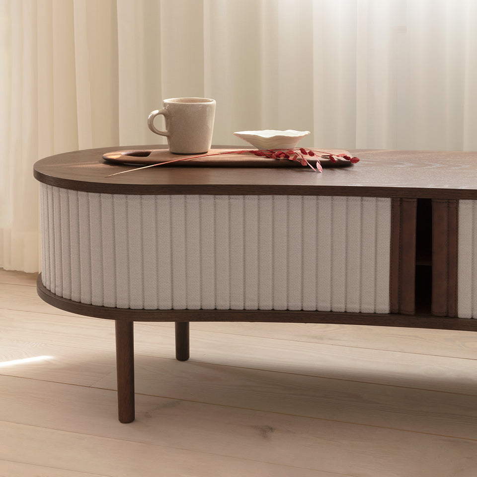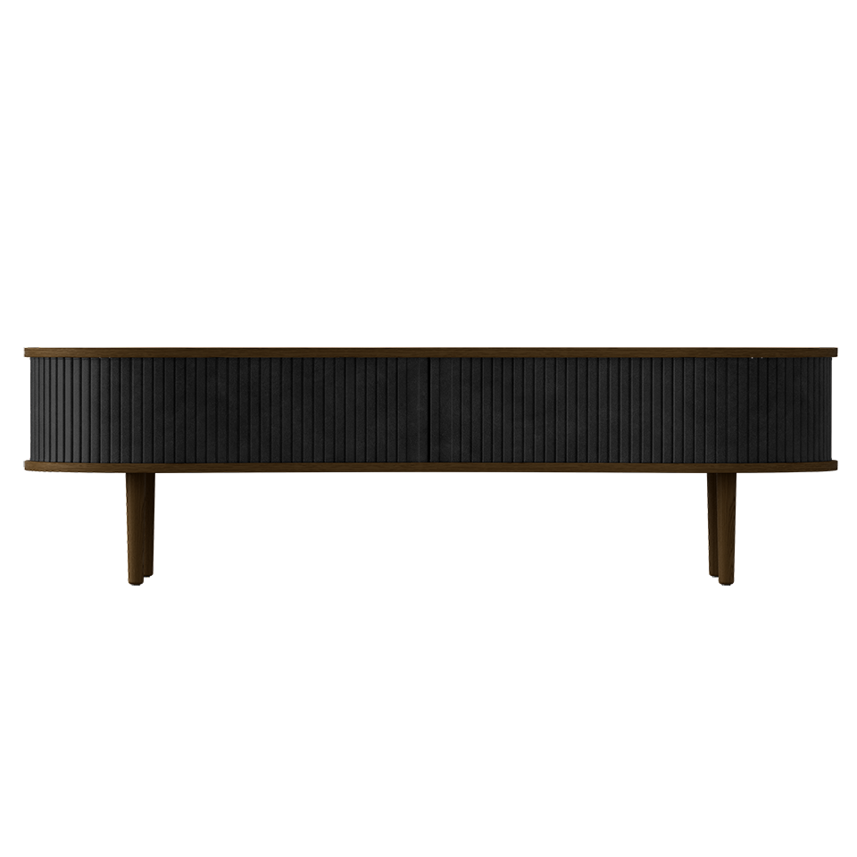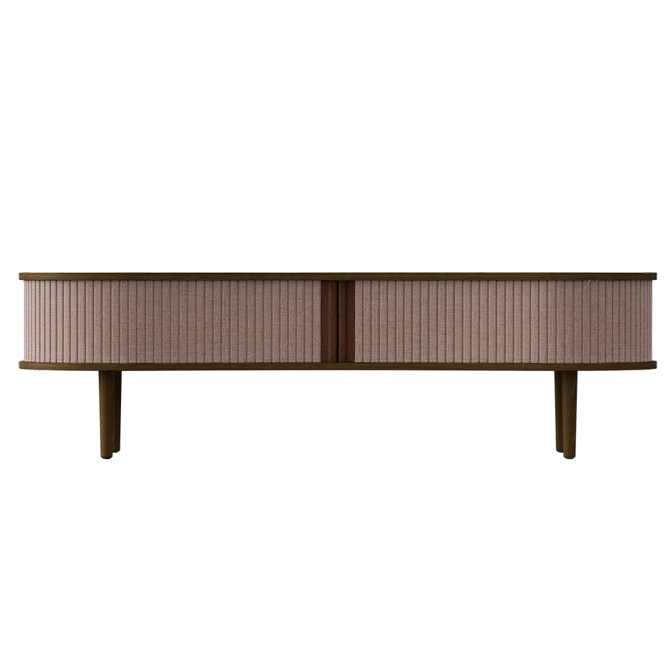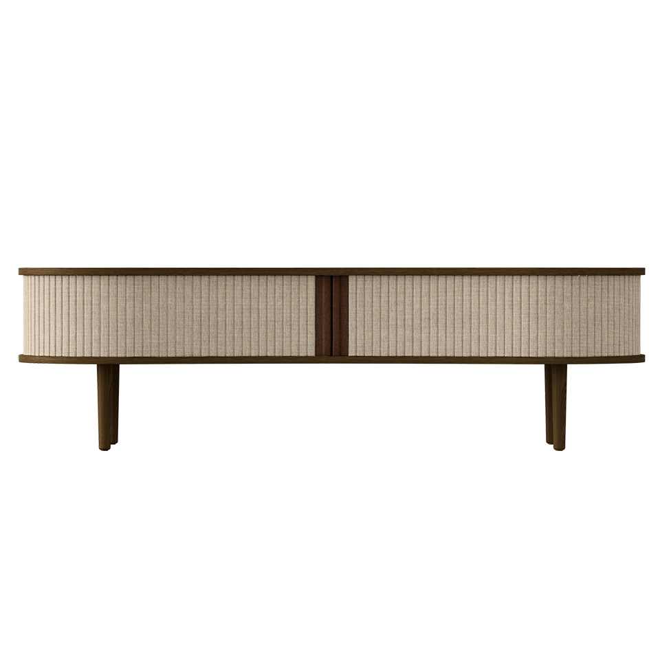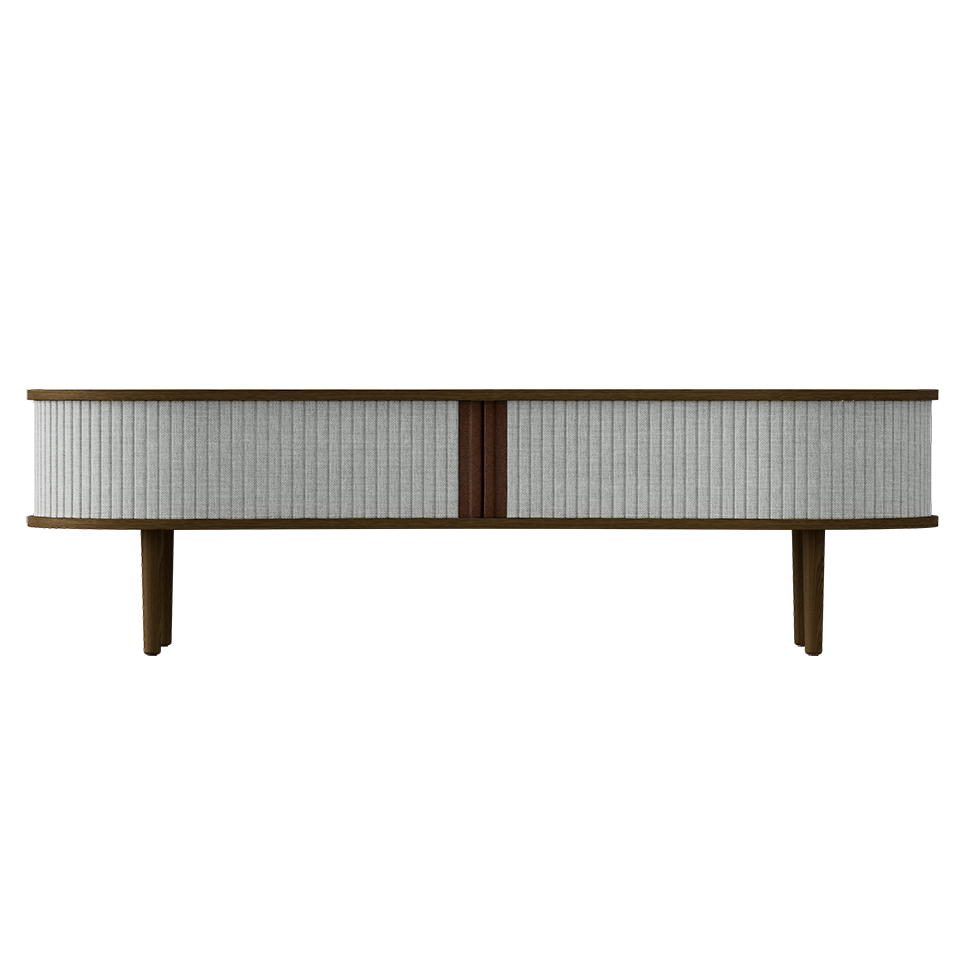 Available in oak, dark oak and black oak with tambour doors in four carefully selected colors of the 100% recycled Horizons textile and two colors of faux leather. The tambour doors are interchangeable, meaning that you can change them easily yourself and add new life to the design without having to buy an entirely new furniture piece, saving the world's resources.