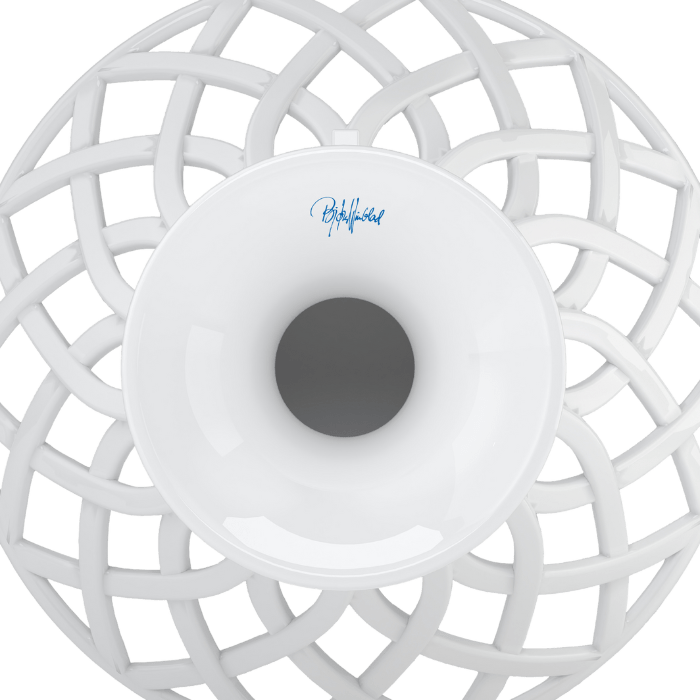 Bjørn Wiinblad is all about the whimsical, the quirky, and the creative, and the Dora Fruit Bowl captures that spirit beautifully. With her cheerful smile and artistic details, Dora adds a playful touch to any interior. Measuring 9.8" in diameter, this glossy glazed ceramic bowl features a rich blue finish with pink accents, including rosy cheeks, a delicate rose at the top, and Wiinblad’s signature triangular nose and almond-shaped eyes. Her sculptural form includes a basket-like woven design, graceful dots along the neck, and a headband with a dotted stripe and wavy trim. Inspired by Wiinblad’s original artwork, she brings color, charm, and a poetic personality to any space. With a name that means “gift” in Greek, Dora is perfect for brightening your own home or someone else’s.