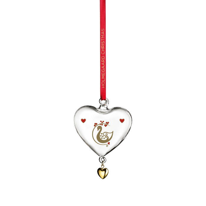 Holmegaard was founded in 1825, and with this year’s 2025 glass ornament, the brand celebrates its 200th anniversary with a design inspired by the swan. This proud and elegant bird is a symbol of Holmegaard, and together with small hearts and a branch of red winter berries, this year’s motif beautifully and decoratively conveys transformation, beauty, and a poetic sense of joy. Ann-Sofi Romme’s small 2025 Christmas heart is made of mouth-blown glass. The colors are kept classic in red and gold with a final metallic finish, while the small red hearts create a cosy atmosphere for the most heartfelt time of the year.