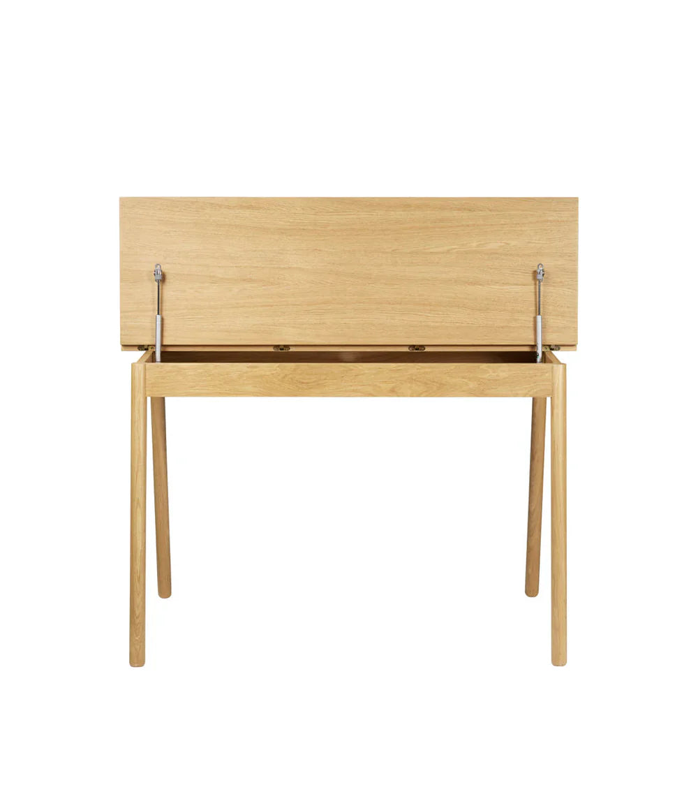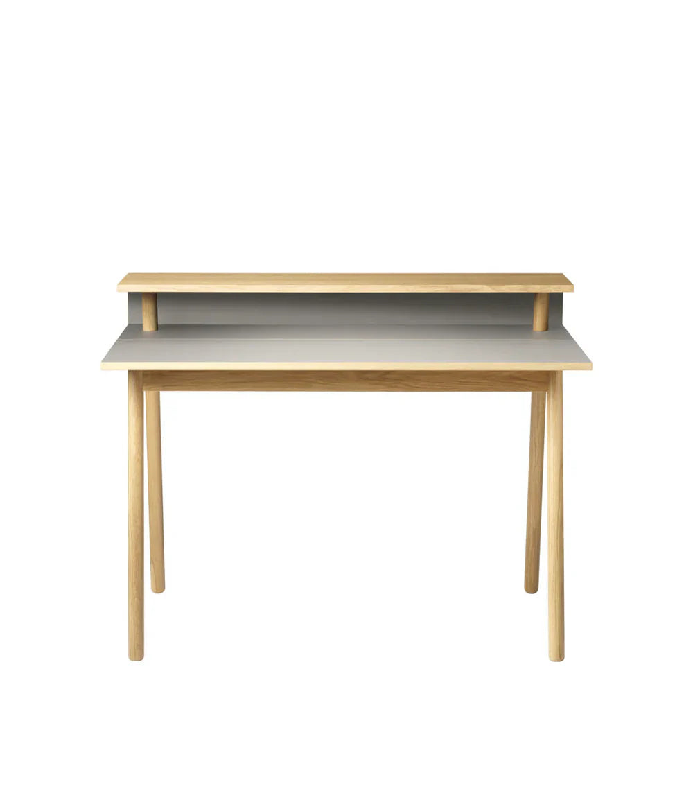The stylish and functional Nørrebro desk by designer Isabel Ahm. Thanks to the simple design, that has been pared down to the absolute essentials, Nørrebro is a table that fits into any home – even the small apartments. The desk has a raised level that acts as an extra shelf for additional storage. Use the shelf for your laptop – the shelf will increase ergonomic comfort – or for your favourite home decorations.
