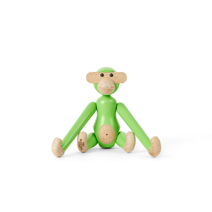 A nostalgic and innovative mood booster. The mini monkey in light green exudes joy with its stylish, trendy look, where the bold color beautifully complements the cool expression of the beechwood, highlighting the wood's natural beauty. The light green celebrates the lushness of nature and the blooming spring, evoking shades of apple green and fresh leaves. The monkey stands at 3.7" tall and is made from FSC® certified beechwood, with detailed features on the hands, feet, face, and belly, giving the mini monkey a cheeky and youthful vibe. The use of color makes this Monkey a perfect playful addition to any modern interior, where it will bring smiles and style with its quirky, colorful appearance, no matter where it’s placed. The colorful mini monkeys make an aesthetic statement that elegantly highlights the Monkey’s round shapes and emphasizes Kay Bojesen’s signature graphic and simple design.