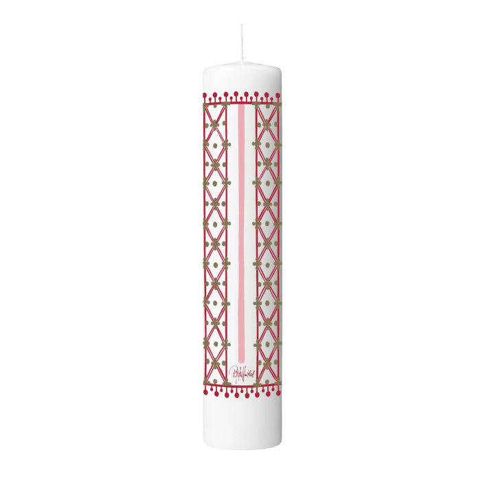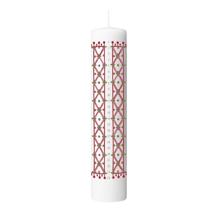 Unfold your colorful personality and let creativity shine with Bjørn Wiinblad’s Eva. Known for her whimsical patterns and vibrant details, Eva brings warmth and charm to your home, even as an advent candle. Cheerful and dreamy, she reflects Wiinblad’s poetic style and joyful spirit. This elegant advent candle stands 9.8" tall and features red and pink dress-inspired decorations with playful metallic gold accents. The numbers 1 through 24 appear in gold from top to bottom, adding a magical countdown to Christmas. Made from fully refined wax, the candle burns beautifully through the entire month. Eva lights up the season with color, style, and holiday cheer, just as Bjørn Wiinblad would have imagined.