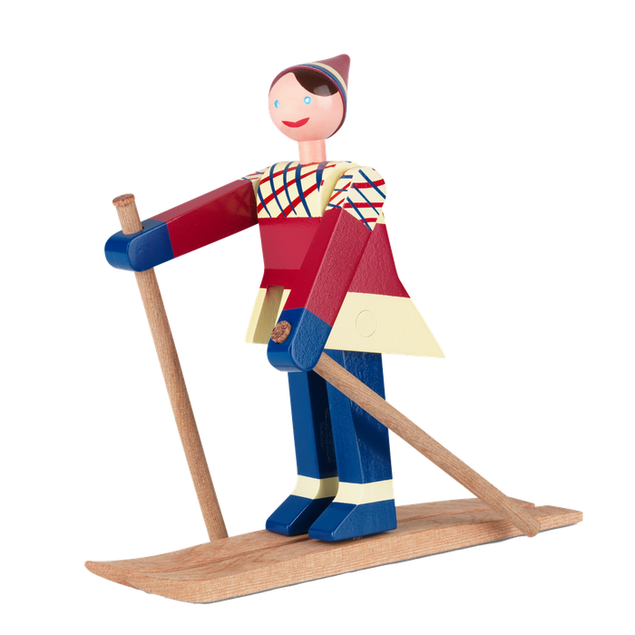 Kay Bojesen designed his two happy skiers towards the end of the 1940s. With her red cheeks, this skier is sure to make people smile. Named after Kay Bojesen's son's wife, Datti is made of painted beech. Stands 6.1" tall.