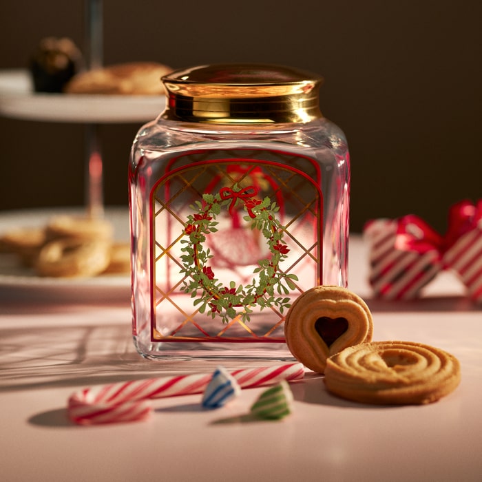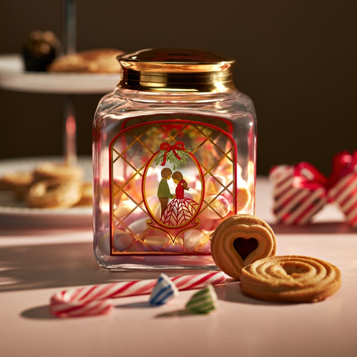 Plenty of Christmas gifts. A festive wreath made of lush greenery, Christmas roses, and holly berries. A traditional and lavish bouquet of Christmas flowers. Red ribbons. And a young couple holding hands under the mistletoe. With artist Jette Frölich’s iconic paper cuttings, Holmegaard Christmas invites us in 2025 to celebrate Holmegaard’s 200th anniversary with a journey into the world of the romantic Christmas. The 2025 motifs naturally adorn the series’ beautiful Christmas biscuit jar, which creates a warm and nostalgic atmosphere, inviting cosy conversations and evoking the feeling of Christmases past.