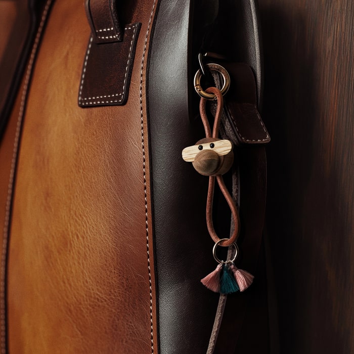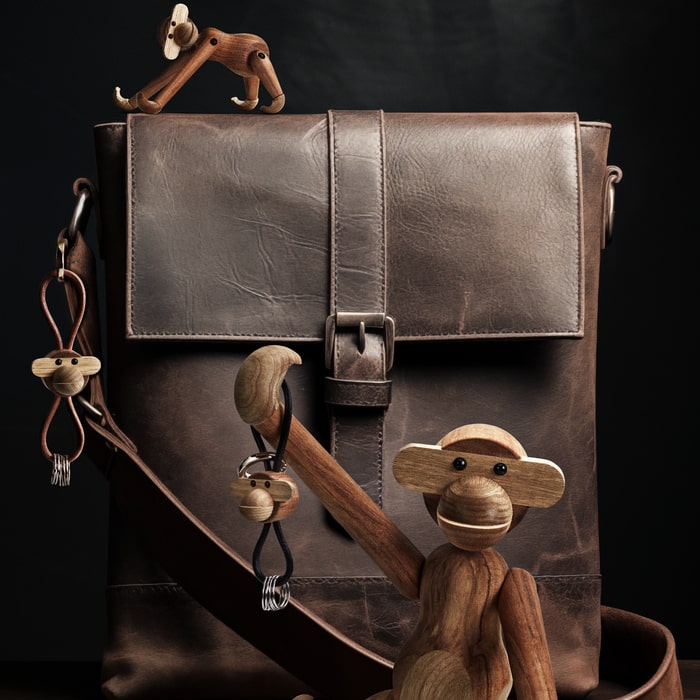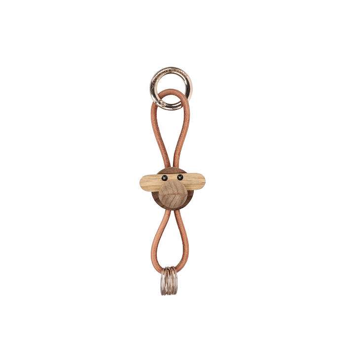 Take Kay Bojesen’s beloved classics and your love for original Danish design everywhere you go. On your bag. On your belt. Or with your car keys. With a stylish and decorative keychain from Kay Bojesen Denmark, you can add a personal touch to everyday life while bringing authentic Danish design along for the ride. Even though the monkey on this keychain is scaled down to just 1.2 inches tall, it still carries all the charm of Kay Bojesen’s design heritage, no matter where your day takes you. This keychain features the monkey’s distinctive head, crafted in the well-known combination of FSC® certified oiled teak and controlled limba wood. It comes with a sleek and durable natural leather cord that can be adjusted up or down along the figure, allowing you to create your own unique look.