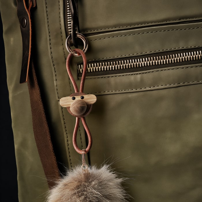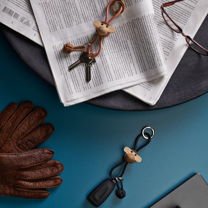 At the top, you will find a large cold-colored key ring stamped with Kay Bojesen Denmark. Not only is it beautifully detailed, it also includes a practical carabiner function that easily opens and closes. Beneath the figure, three additional key rings provide plenty of space for all your keys. The keychain is delivered in a reusable non-woven pouch and finished with a Kay Bojesen tag.
