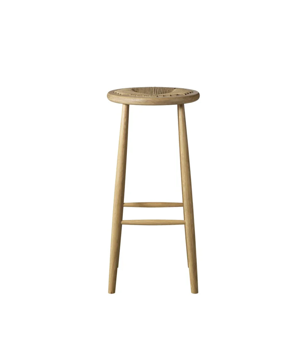 J165 is an elegant and stylish take on a high stool with distinctively clean lines and a round, comfortable paper cord seat. It is unusual to see a high stool with a woven seat, but with an expression similar to other Danish dining chair classics, this high-chair clearly writes itself into that design tradition. A classic Jørgen Bækmark design with a highly contemporary functionality. J165 comes in different versions and was released to celebrate Jørgen Bækmarks 90th birthday.