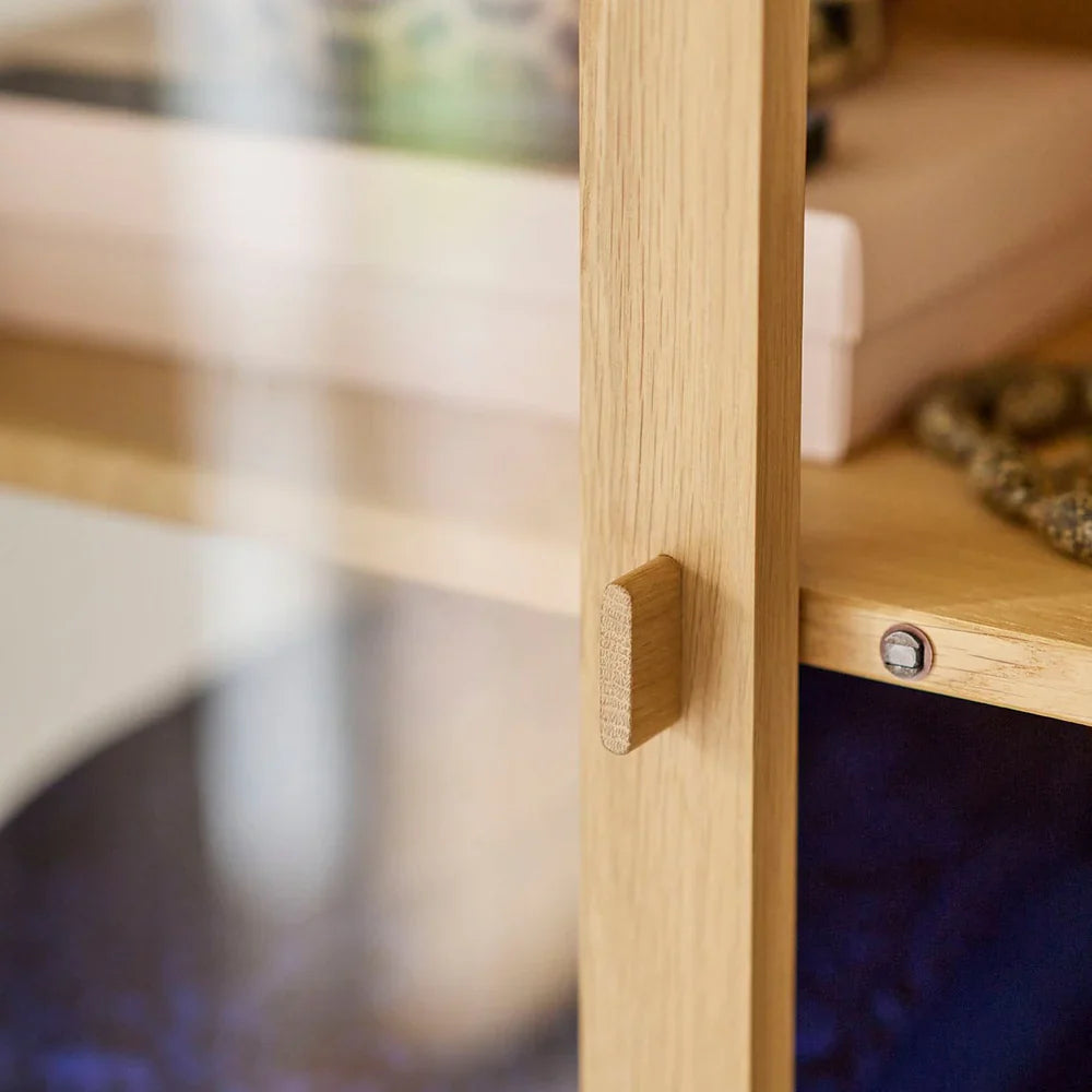 The designer Rasmus Appel presents his take on what a wooden display case should look like in a contemporary and simple design. Rasmus Appel, who trained as an industrial designer at the Royal Danish Academy of Fine Arts, School of Architecture, is from Bornholm, and is inspired by the boat-building and the beautiful oak dinghies which are known for their fine proportions, construction and joints. The result is the display case Boderne, a simple piece of furniture that will grace any home. It also provides practical storage space with several different options with regard to both functionality and positioning.