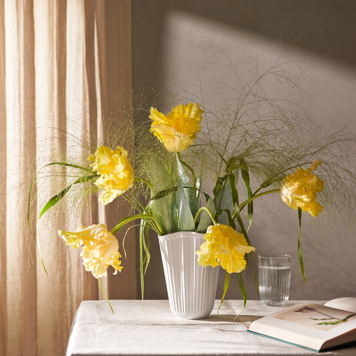 Good craftsmanship meets Danish design in the Hammershøi Unfold vases, celebrating 10 years of the Hammershøi series. Their unique folded form creates a soft, inviting shape that supports flowers while enhancing their natural flow. Crafted from chalky white ceramic, the vases come in two sizes: 8.1 inches for large bouquets and 6.5 inches for smaller arrangements. The signature grooves reflect Kähler’s heritage while embracing a modern vision. Designed by Hans-Christian Bauer, they draw inspiration from Svend Hammershøi’s 1930s vases. Their organic, playful shape encourages effortless floral styling. Softer than the classic Hammershøi vase, Unfold maintains the signature design language. This collection blends tradition with evolution, offering timeless elegance. A tribute to craftsmanship, history, and innovation, these vases redefine modern Danish design.
