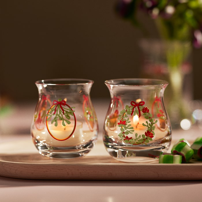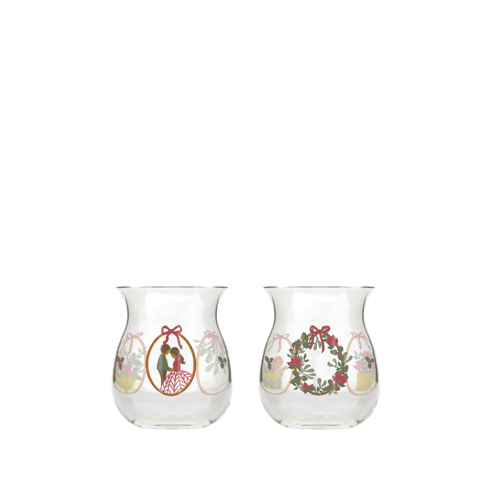 Plenty of Christmas gifts. A festive wreath made of lush greenery, Christmas roses, and holly berries. A traditional and lavish bouquet of Christmas flowers. Red ribbons. And a young couple holding hands under the mistletoe. With artist Jette Frölich’s iconic paper cuttings, Holmegaard Christmas invites us in 2025 to celebrate Holmegaard’s 200th anniversary with a journey into the world of the romantic Christmas. The 2025 motifs naturally adorn the series’ charming Christmas tea light holders, which create a warm and nostalgic atmosphere, inviting cosy conversations and evoking the feeling of Christmases past. They come in a set of two, allowing you to enjoy the exquisite motifs together and appreciate the combination of Holmegaard’s passionate glass craftsmanship and Jette Frölich’s original artistic universe while welcoming Christmas in the glow of candlelight with family and friends.