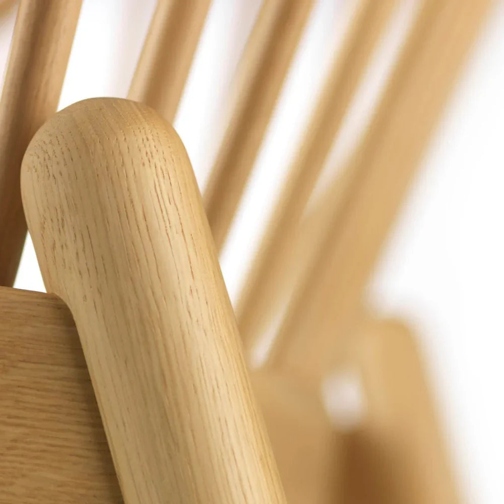 The armchair is one of the most important pieces of furniture in the home. It also has a very special status in Danish furniture design. The armchair is also a spot where we can relax and recharge. When the famous architect Poul Volther created the Jørna armchair, he had his wife in mind, hence the name. Jørna relaxed with her knitting with long knitting needles - so there was made room for them too. To this day, there is room for knitting, laptop or iPad in the comfortable armchair.