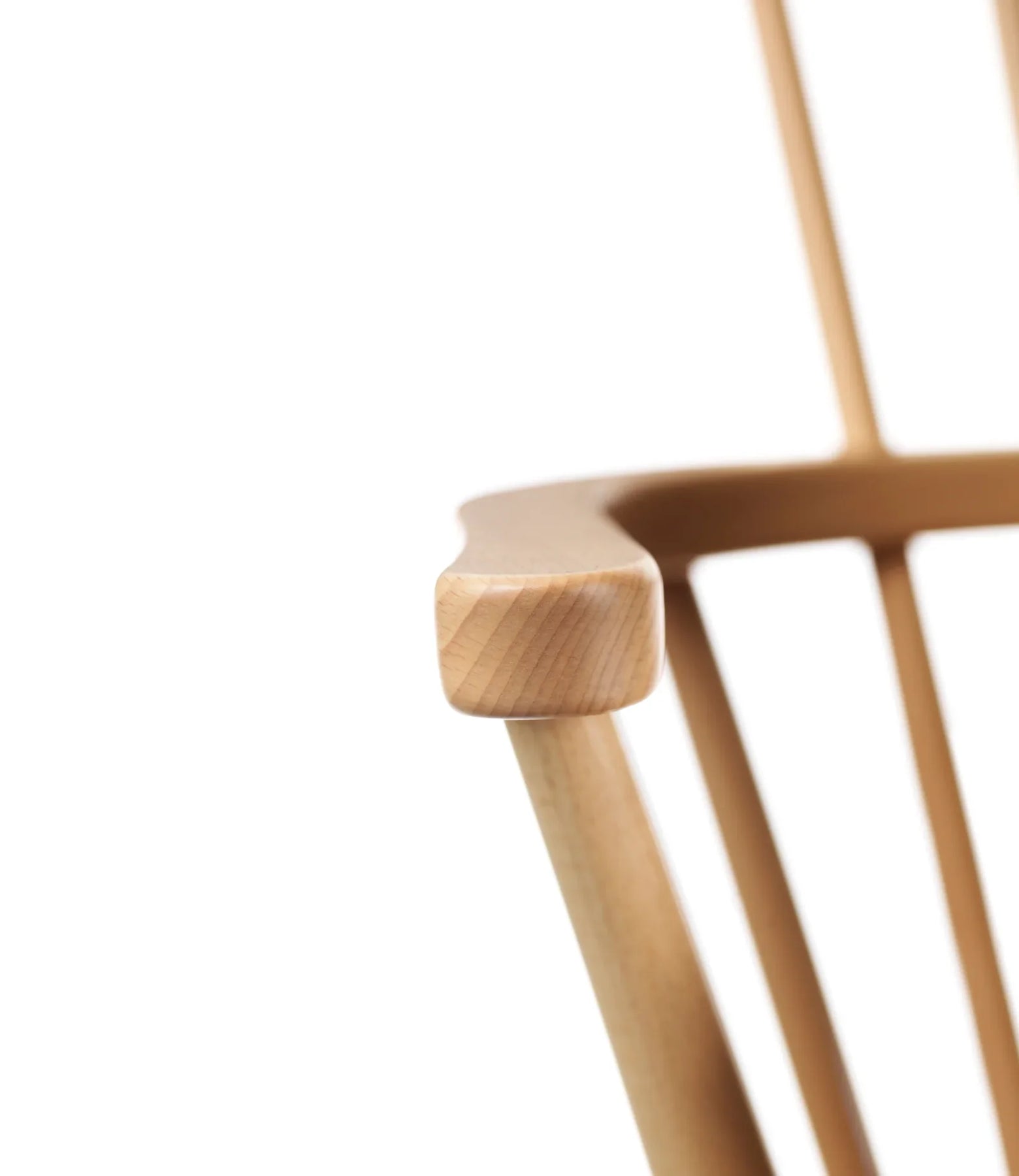 Børge Mogensen was already referencing historical classics when he designed J52B, his take on the English Windsor chair, in 1952. The Windsor chair was a solid and comfortable chair with roots in 16th-century England, and here FDB Møbler's head designer tried to lighten the expression with a range of simple staves. The result was a very comfortable chair with a simple and functional expression. The chair was reportedly President Kennedy's favorite chair to relax in. It can be used both as a dining chair and as a lounge chair.