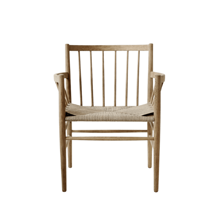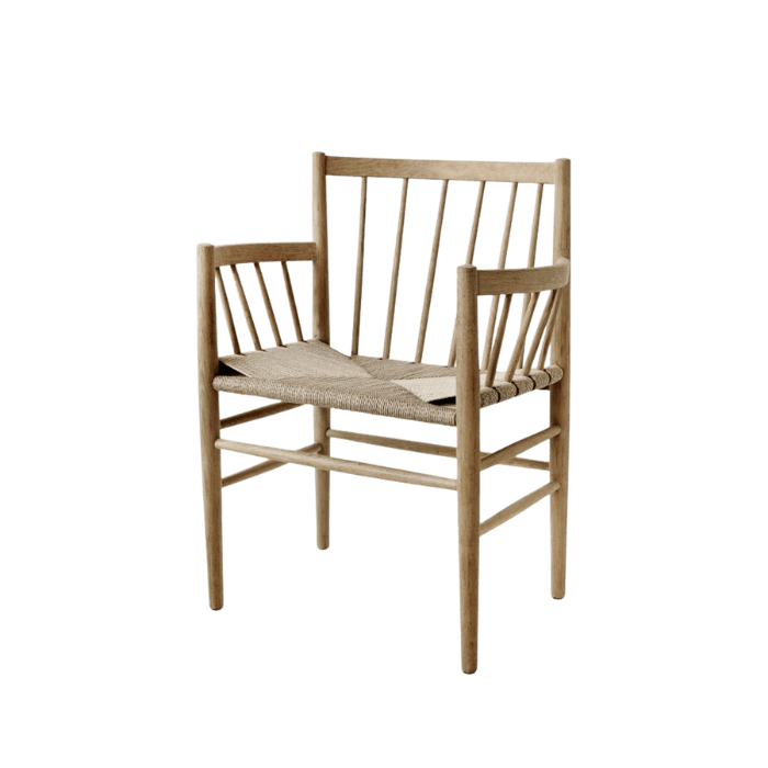 This woven series by renowned FDB designer Jørgen Bækmark comprises several pieces of furniture, including the classic and iconic J80 dining chair. The series harks back to the golden age of FDB Møbler in the 1950s and has survived to this day due to its elegant and timeless look. J81 is the version with armrests which also functions as a free-standing chair. It is comfortable to sit in for long periods of time as it is made from quality materials from the paper cord to the solid wood.