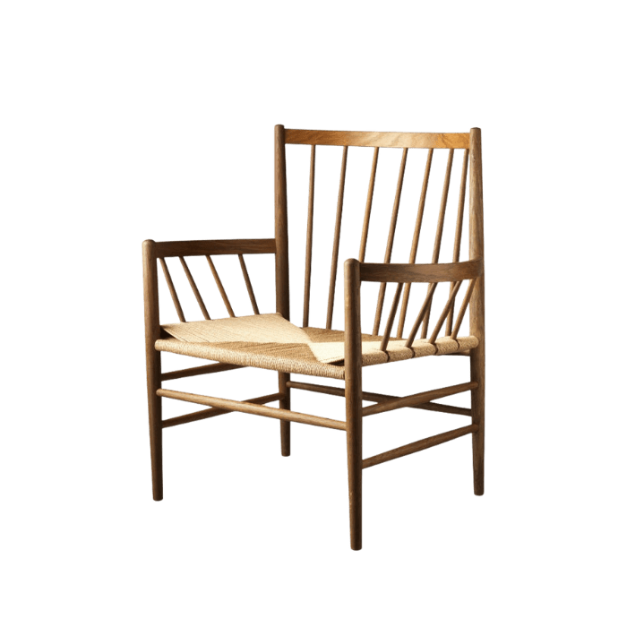 This woven series by the renowned FDB designer Jørgen Bækmark comprises several pieces of furniture, including the classic and iconic J80 dining chair. The series harks back to the golden age of FDB Møbler in the 1950s and has survived to this day due to its elegant and timeless look. J82, the lounge chair that doubles as a freestanding chair, is comfortable to sit in for long periods of time as it is made from quality materials from the paper cord to the solid wood.