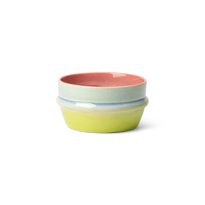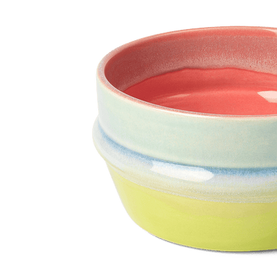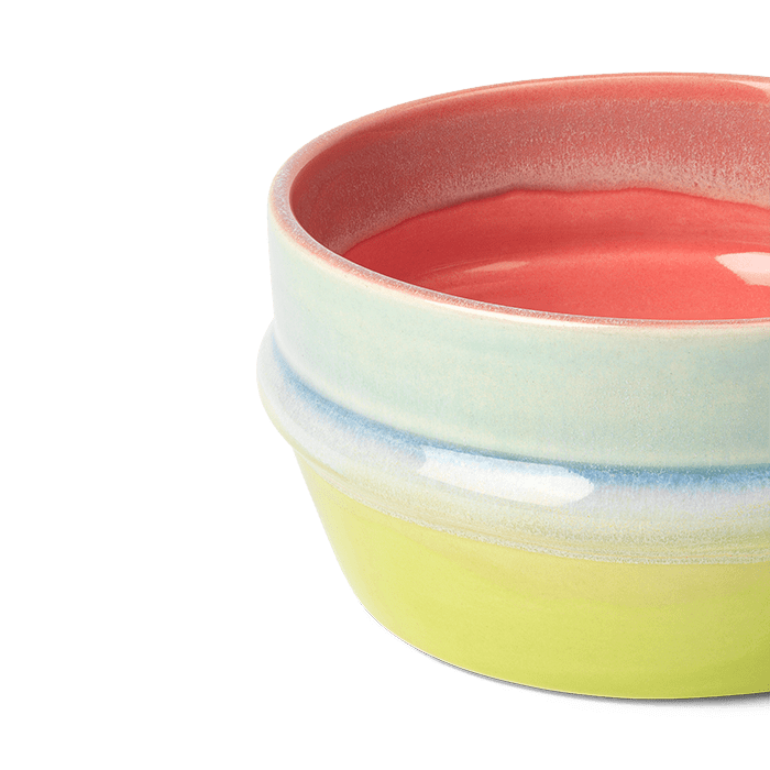 Colorful pop culture meets handcrafted design traditions. The smallest bowl in the Poppery series, with a 4.7" diameter in pink, mint, and apple-green, celebrates both ceramic craftsmanship and a love for pop culture. It’s perfect for a cozy breakfast, holding your favorite sweets on the coffee table, or as an eye-catching piece of art on the shelf. Whether you’re adding a cheerful touch to your existing Poppery collection or starting your Kähler X KIMPOP collection with a lively seasonal design, this multi-colored bowl — drawn from original Kähler designs in the archives — offers a delightful shape and an authentic visual appeal. It invites you to pause and appreciate the design, what you’re eating, and the world around you.