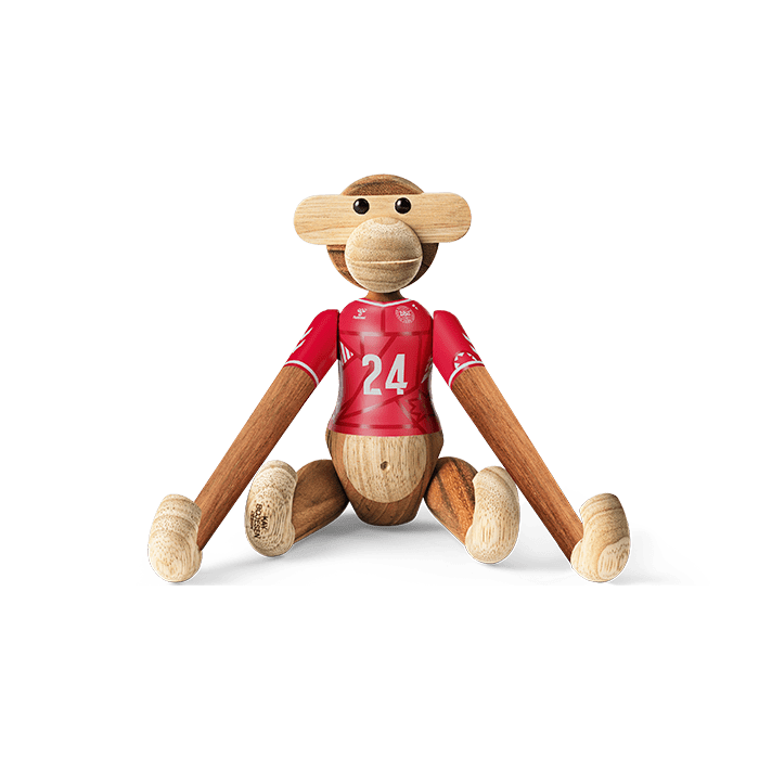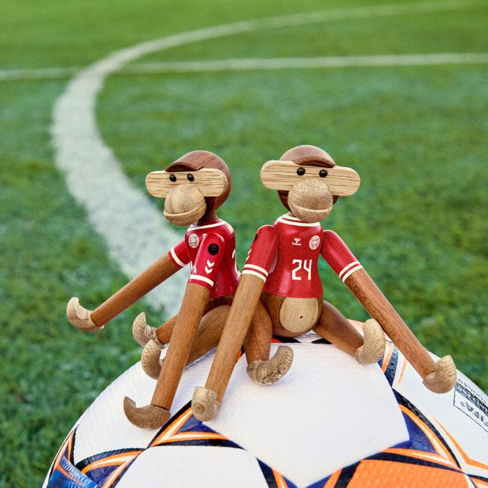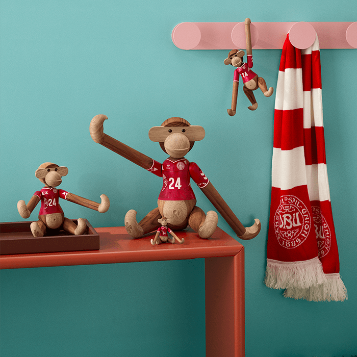 A new teammate for everyone in Red and White! With the Kay Bojesen Monkey x DBU (Danish Football Association), two of the greatest Danish national icons have joined forces. With humor, creativity, and impeccable craftsmanship, this collaboration celebrates unity, pride, and the joy of standing side by side. Made from the classic mix of FSC® certified teak and controlled limba wood. The collaboration with the Danish Football Association puts Kay Bojesen’s original stories made of wood in a new context and adds an exciting new chapter to an already incredible and playful design heritage.