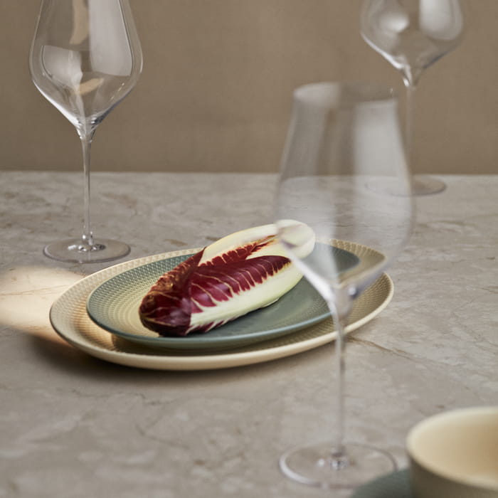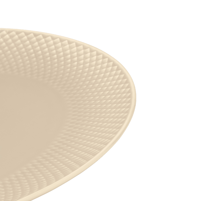 A grounded and present expression on the table. With a color palette of four elegant earth tones, Rhombe Earth invites us to slow down, be present with what we eat, with whom we share our meals, and to notice the beauty of the tableware we dine from. The series' serving dish, comes in the shade marble, which, like the other muted earth tones in Rhombe Earth, brings out the iconic Rhombe relief pattern in a new and distinctive way, encouraging us to go deeper. Use all the different Rhombe Earth pieces together in your table setting and let the various plate sizes peek out from under each other, allowing the warm tones to interact.