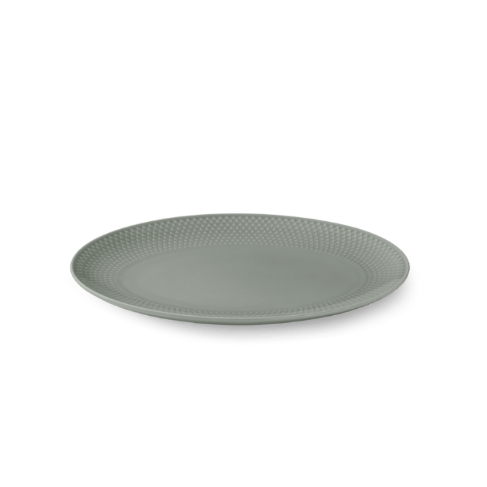 A grounded and present expression on the table. With a color palette of four elegant earth tones, Rhombe Earth invites us to slow down, be present with what we eat, with whom we share our meals, and to notice the beauty of the tableware we dine from. The series' serving dish, comes in the grey-green shade moss, which, like the other muted earth tones in Rhombe Earth, brings out the iconic Rhombe relief pattern in a new and distinctive way, encouraging us to go deeper. Use all the different Rhombe Earth pieces together in your table setting and let the various plate sizes peek out from under each other, allowing the warm tones to interact.