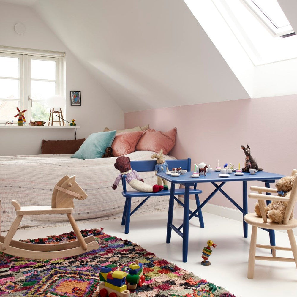 The chair is suitable for a children’s playroom, or a cosy children’s corner in the living room. There is no denying the connection between the chair and Børge Mogensen’s famous dining chairs. The children’s table obviously needs to be the right height, so that it is easier for children to immerse themselves in play or drawing. The children’s table is a stylised version of Børge Mogensen’s original dining tables. The Børge Mogensen bench is something of an institution, so it was obviously part of the range when the children’s furniture was launched for the first time in the late 1940s. A seat which combines the cosy with a nod to a design